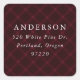 Añada un toque personalizado a sus sobres de vacaciones con nuestras etiquetas de devolución de vacaciones con pincel. El diseño presenta el nombre y la dirección mostrados en letras blancas con un fondo de color burdeos pintado.