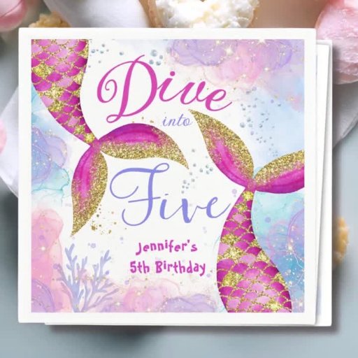 Dive into Five! Girls Pink Mermaid 5h BirthdayDiseñado por H-Art Studio Design