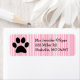 Personalizado Perro rayado rosado o gato Etiqueta de la dirección de devolución de la impresión de la página