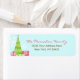 Envíe sus saludos de temporada con estilo esta temporada con estas impresionantes y extravagantes etiquetas de la dirección de retorno de vacaciones. Con un moderno árbol de Navidad y adornos de regalo y copos de nieve dispersos por todo el hotel para un ambiente luminoso y de color rosa, azul acuático claro y verde. Personaliza la información de tu dirección de retorno.