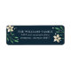 Diseñadas para coincidir con nuestra colección de tarjetas de vacaciones Bright Boughs, estas etiquetas festivas incluyen su dirección de retorno con letras blancas en un fondo azul de medianoche, flanqueado por flores de color marfil crema de poinsettia y follaje botánico verde.