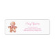 Pan de jengibre y Navidades van juntos. Un pequeño hombre de pan de jengibre con mejillas rosadas y un arco de vacaciones rosado es adorable como puede ser. ¡No se hace mucho más dulce que esto! Esta persona sonriente es de un diseño de color de agua vintage que es genial para sus etiquetas de dirección de retorno.