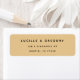 Etiquetas impresas de dirección de retorno - Láminas de direcciones de retorno doradas simples y modernas - Para cualquiera que aprecie el aspecto de amarillo dorado cálido con emparejamiento de nombres de pareja. Ideal para bodas y otras invitaciones. — DETALLES DEL PRODUCTO: 30 etiquetas por hoja! tamaño de la etiqueta: 2,25" L x 0,75" H ; tamaño de la hoja: 8,5" L x 11" H Tipo de papel: acabado mate. Personalizable: Añade tu información para que sea la única que sea la tuya. PEDIDO FÁCIL: 1. Utilice el menú desplegable para seleccionar el número de hojas de etiquetas que desee. 2. Utilice el cuadro azul personalizar para introducir su información en la plantilla 3. Corrección ortográfica doble 4. Añada el artículo a su cesta y salida — INFORMACIÓN IMPORTANTE: (Envío GRATUITO con Afiliación a Zazzle Plus - consulte la página principal para más detalles)
