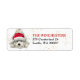 El lado izquierdo de estas etiquetas de dirección de retorno presenta un adorable Territorio Blanco de la Montaña Occidental con un gorra rojo y blanco de Santa Claus. El "confetti dorado" da más interés al fondo. Su texto personalizado está en rojo y negro a la derecha.