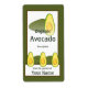 Un ilustracion gráfico vectorial de aguacates en una variedad de productos. Esta etiqueta de jardinero tiene plantillas de personalizable para el texto. Obra de arte original: Copyright Charmaine Paulson