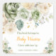 Hermosa pegatina para baby shower con arreglos florales en verde salvia y crema. Perfecta para una fiesta de bebé. Las palabras se pueden cambiar para adaptarse a tus propios detalles o requisitos