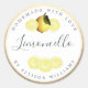 Elegante y moderno sello de pegatina limoncello con el texto limoncello, casero con amor y su nombre en caligrafía de escritura de moda y tipografía moderna sobre un fondo de champán dorado con un toque elegante de bonito canela y lonchas de limón. Simplemente agregue su nombre o negocio. Diseñado exclusivamente para usted por Happy Dolphin Studio. Si necesita ayuda o productos coincidentes, póngase en contacto con nosotros en happydolphinstudio@outlook.com.