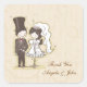 Un pegatina del boda con los pares del palillo de novia y del novio en fondo del moreno con remolinos ligeros. Pedazos de coordinación disponibles en tienda.