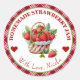 Diseño de fresas rojas y verdes acuarela en una cesta con fondo de cuadros clásico rojo