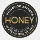 Etiqueta tu propia miel, velas, cera de abejas y más con este moderno pegatina de miel de oro negro y metálico. Personalice con su nombre de negocio apacible en la parte superior y añada en su ubicación o en NET WT abajo. La palabra HONEY se imprime con una apariencia elevada en una fuente brillante de oro metálico "cincelada" que casi parece recubierta de miel. El centro de la letra "O" en HONEY está lleno de panecillos.