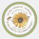El diseño central muestra una abeja de miel polinizando un girasol. Escriba su nombre, tipo de miel, dirección y peso neto para asegurarse de que todos recuerden su producto. Conversiones comunes de peso neto de miel: 8 oz (227 g), 12 oz (340 g), 16 oz (454 g), 32 oz (907 g), 5 lb (2,27 kg).