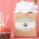 Abeja de miel dibujada a mano con corazón dorado en la etiqueta de frasco circular