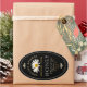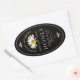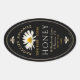 Pegatina de miel de oval negro con foto de margarita y abejas de miel de época en la parte superior e inferior de la etiqueta. "Miel" está impreso en una fuente decorativa. "Producto de EE.UU." se indica en la parte inferior de la etiqueta. El nombre de las colmenas está escrito en letra curvada encima de la margarita.