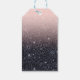 Eleva tu envoltorio de regalos con esta elegante etiqueta de nombre inspirada en brillos rosa y negro. Diseñada con un fondo ombré moderno y destellos falsos, esta etiqueta de regalo personalizada añade elegancia y personalidad a los regalos de cumpleaños, paquetes de vacaciones, favores de ducha de novia y más. Personaliza con tu inicial o nombre para un toque chic y único. Impreso en papel mate premium con cuerda opcional para fácil atado.