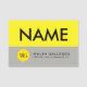 Etiqueta de nombre personalizada con el pin original hacia atrás. Presentan un color amarillo brillante y gris claro con el logo de la empresa personalizado.