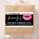 Diseño de lápiz labial lujoso con besos rosados llamativos en rayas negras atrevidas y modernas. Ideal para la comercialización de distribuidores de lápices labiales, la marca de bloggers de belleza y mucho más.