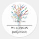 Este Pegatina de la Etiqueta de Nombre de Reunión Familiar está decorado con un árbol familiar en los colores del arcoiris. Los pegatinas dicen "hola, lo soy" y un espacio para que cada miembro de la familia escriba su nombre. Personalizable fácil. Utilice la Herramienta de diseño para cambiar el tamaño, estilo o color del texto. Porque creamos nuestra obra de arte no encontrarás esta imagen exacta de otros diseñadores. Original Mosaico © Michele Davies.