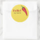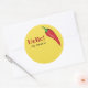 Hola nombre de etiqueta para cocinar chile o cualquier evento de comida con pimientos calientes. El texto dice ¡Hola! mi nombre es, pero puedes editarlo si quieres. El color de fondo amarillo también se puede cambiar a otro color. El gráfico es de una pimienta de chile roja. Los participantes, concursantes o invitados pueden escribir su nombre y/o nombre de negocio en el espacio vacío del pegatina de acabado mate.