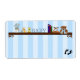 ¡Un nombre de invitado de bebé muy lindo! Fondo claro de rayas azul pastel con pisadas para bebés y una guardería para bebés. En el estante: un frasco de carnicería con flores, un pato amarillo de goma, libros, un caballo mecedor, bloques de bebé y un oso de peluche. Una manera maravillosa de presentarte a tus amigos de la ducha de bebé y a tu familia. Usa este pegatina de etiquetas de nombre, para adivinar el sexo del bebé... chica del equipo o chico del equipo. Este adorable pegatina está disponible en otro color - Por favor visite mi tienda "The Hungarican Princess" en www.zazzle.com/hungaricanprincess*. Mira en mi categoría de "Oh bebé". ¡Enhorabuena!