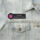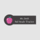 Una etiqueta negra con el nombre de un profesor de pizarra con una manzana rosa con un punto polka. Personalízalo con un nombre y un grado o asunto. © ArianeC Ilustraciones-Todos los derechos reservados