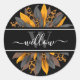 Etiqueta Monogramada Rustica de caligrafía de girasol para niños. Girasol único y de moda con pétalos en tonos gris, amarillo, naranja y leopardo, con una plantilla de monograma personalizado y elegante plantilla de nombre de guión caligrafía. Este sello de pegatina inspirado en esta casa de campo de bonito haría una elegante etiqueta con el tema del verano que se puede poner en la propiedad de su hijo antes de enviarlos al campamento, escuela, etc.