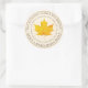 Personalice esta etiqueta de jarabe de arce con la información de contacto, grado y volumen del propietario del negocio (lista incluida de conversiones de Estados Unidos y métricas para tamaños populares). Diseño central de arce de azúcar amarillo. Nombre de estado en texto curvo bajo hoja de arce.