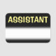 Este audaz diseño de placa de estilo de etiqueta de borrado en seco para voluntarios incluye el mensaje "ASSISTENTE". También incluye un área donde el nombre de un voluntario podría escribirse usando un marcador de borrado seco. Una insignia de estilo de etiqueta de nombre como esta podría ser usada para mostrar que una persona es voluntaria o asistente autorizada en un evento. [~Z0000359]