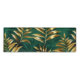 Seamless pattern of gold, jewelry, shiny fern branches and leaves on green, woodland, textured background. Golden fern.