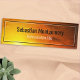 Esta etiqueta profesional de nombre de espalda magnética presenta un nombre profesional en negro y un título en blanco sobre el fondo de una obra de arte del naranja al atardecer. Está enmarcado por un borde blanco y negro con rayas. Personalice los campos de texto o haga clic en personalizar para seleccionar el estilo de fuente, el tamaño y el color que prefiera.