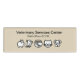 Etiquetas de nombres de personal veterinario en un diseño profesional creado con una variedad de animales y espacio de nombres para los nombres de su empresa y de los miembros del personal en su práctica veterinaria. Diseñado con una imagen de conejo, perro, gato, ave y tazón de pescado.