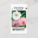 Tarjeta de negocios fácil de personalizar, ideal para jardinero o paisajista. Publicidad artística de la etiqueta del producto de semillas de ilustracion de época con Camellias Mezcladas de Balsam. Cultivar hermosas flores de lavanda de primavera rosa, blanca y violeta en tu jardín o en una granja. Publicidad antigua para F. Lagomarsino & Sons Company, Sacramento, California.
