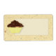 Esta etiqueta de pastel de chocolate incluye un quequito de ratón de computadora y es perfecta para etiquetar productos horneados.