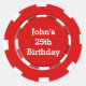 Etiqueta de pegatina de fiesta de casino de ficha de póquer roja. Personalice con cualquier texto.