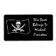 Esta etiqueta muestra una bandera pirata de Jolly Roger con un cráneo y espadas cruzadas. Se puede usar como una placa de biblioteca, etiqueta de envío y más.
