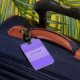 Etiqueta de portaequipajes con franjas violetas de