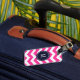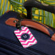 Etiqueta de portaequipajes de monograma rosa y bla
