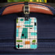 Este personalizable Retro Grid y Starbursts Lumaletas Tag es donde el estilo vintage se une al moderno día. Presenta un fondo color crema con kitschy, cuadrados y rectángulos fuera de kilómetros en verde azulado, turquesa, azul claro, naranja y verde aguacate. Los bloques caprichosos de color son revueltos en algunas intersecciones de la cuadrícula. También hay rectángulos negros con líneas verticales y horizontales negras formando un patrón de cuadrícula. Diseño de estribos negros y cuadrados colocados esporádicamente a lo largo de este moderno tapiz de color de mediados de siglo. El lado opuesto tiene un fondo turquesa y está listo para que usted lo personalice. Coja sus botas de go y los fondos de campana y disfrute de esto hasta los años 60.