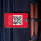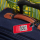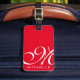 Etiqueta de equipaje del personalizado con correa de cuero: monograma de guión grande y nombre con código QR