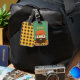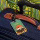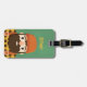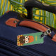 Una etiqueta para el equipaje con un lindo ilustracion de un leñador con gorra de abejas naranja, una gran barba llena, tirantes naranjas y una camisa de estampado amarillo y marrón. Personalice el nombre del niño en el gorra.