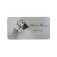 Personalizar a estos elegantes Pegatinas de Anillos de Boda con los nombres personales de la novia y el novio y cita para crear una de las amables etiquetas de favor para los favores de la fiesta de tu ducha de novia o recepción matrimonial. Los pegatinas nupciales personalizados presentan una fotografía de primer plano de un anillo de compromiso de diamantes y una banda de bodas con un fondo de tul blanco.