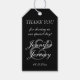 Estas etiquetas personalizadas de agradecimiento a tu boda presentan un sencillo diseño de caligrafía blanca en un fondo negro de moda. Personaliza con tus nombres, sentimientos y fecha de boda. ¡Mis mejores deseos para su boda y matrimonio! Diseñado por Susan Coffey.