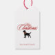 Etiquetas de regalo clásicas para Navidades con perro y arco rojo.