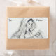 Un simple dibujo a lápiz blanco y negro de María sosteniendo al Niño Jesús.