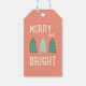 Una linda etiqueta de regalo de vacaciones con ilustracion de Árboles de Navidad dibujado a mano y texto de Feliz y Brillante con letra moderna. Traerá algo de alegría navideña a cualquiera que la reciba. Puede mover, eliminar o cambiar la mayoría de los elementos de diseño/fuentes/fondo según su elección/preferencias.