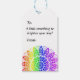 Una sencilla etiqueta de regalo colorida con un diseño de mandala