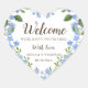 La hermosa etiqueta adhesiva de bienvenida con flores silvestres presenta preciosas flores azules de nomeolvides y hojas verdes en acuarela. Este diseño floral es perfecto para crear papelería con tema de jardín o rústica para bodas o baby shower. ¡Hazlo tuyo con facilidad insertando tu información. Una elegante y delicada plantilla de etiqueta adhesiva floral para hacer que la ocasión sea aún más especial.
