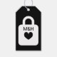 Etiqueta de regalo de boda personalizada con bloqueo de amor monogramado. Reloj y agujeros de apertura cardíaca. Ideal para fiestas, regalos hermosos y más. Diseño personalizado con iniciales de nombre o monograma. Añade tu propio texto de agradecimiento al dorso. Plantilla moderna de tipografía. Ejemplo blanco y negro. Colores de personalizable.