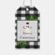Etiquetar los regalos de sus Navidades para sus destinatarios esta temporada navideña con una etiqueta de regalo de búfalo de nieve. El diseño de la etiqueta de regalo incluye una caja adornada con ramas de pino y un encantador muñeco de nieve sobre un fondo de manto de búfalo blanco y negro. También hay artículos de regalo y de vacaciones disponibles con este diseño.