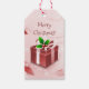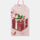 Crea un toque único a todos tus regalos de vacaciones con una etiqueta de regalo de la caja de regalo de los Navidades rojos. El diseño de etiquetas de regalo presenta un regalo de Navidades rojos vibrante adornado con copos de nieve cayendo contra un desplazamiento elegante y deja el fondo. También hay artículos de regalo y de vacaciones disponibles con este diseño.
