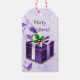 Crea un toque único a todos tus regalos de vacaciones con una etiqueta de regalo de Navidades morados. El diseño de etiquetas de regalo presenta un regalo vibrante de Navidades morados adornado con copos de nieve cayendo contra un elegante desplazamiento y deja el fondo. También hay artículos de regalo y de vacaciones disponibles con este diseño.